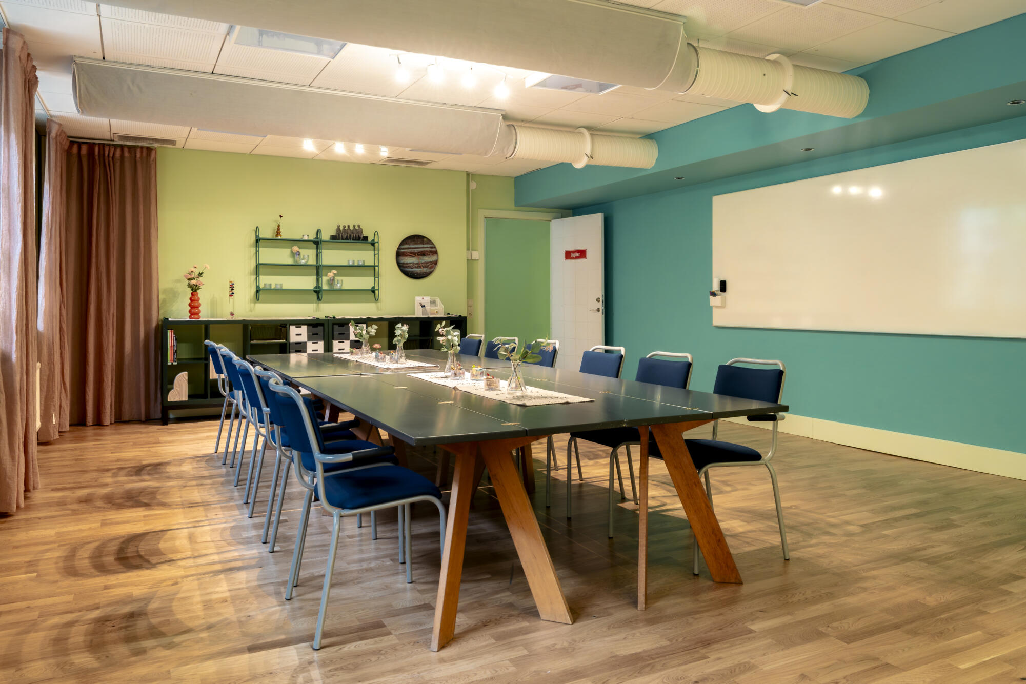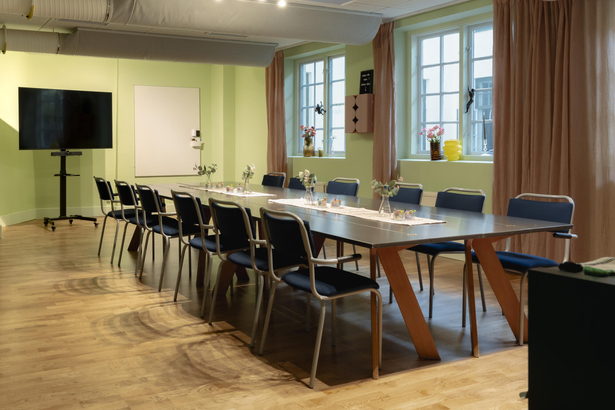 Genom rummets utformning skapas en nära och personlig känsla, där samtalet får ta plats och idéer får utrymme att växa – helt enkelt ett rum att sväva ut i. Med justerbar takbelysning kan ni enkelt anpassa ljuset efter mötets karaktär – från skarpt fokus till mer avslappnade och kreativa stunder.