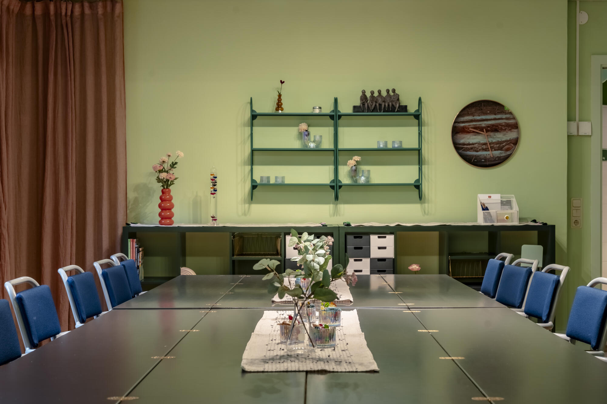 Här möts ni i en miljö där färg, form och detaljer skapar en varm och inspirerande atmosfär – en plats som bjuder in till både fokus och kreativitet.